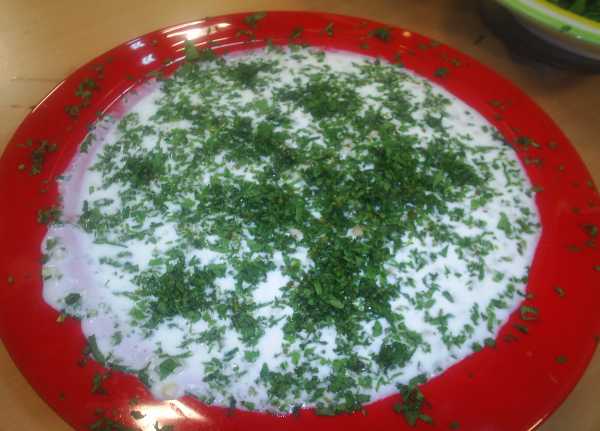 Süzme yoğurdu çok açmayarak su ile kıvamlı olacak biçimde hazırlayın.