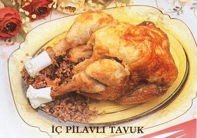 Bir tencereye yağ, fıstıklar, ince kıyılmış soğan konulup yağ ile beraber 1-2 dakika çevrilir. Ayıklanıp yıkanmış pirinç ilave edilip 1-2 defa çevrilir. Üzerine üzüm, yenibahar eklenir. Sadece 1 su bardağı su koyulur. Tuz ilave edilir ve pilav yarı pişmiş olarak ateşin altı kapatılır. Diğer tarafta yıkanmış, temizlenmiş tavuk ateşe dayanıklı fırın poşetine konulur. İçine ve etrafına yarı pişmiş pilav doldurulur. Poşetin ağzı kapatılır ve 200 derecede 1,5 saat kadar tavuğun üstü kızarıp pilav tavuğun suyunu çekinceye kadar kızartılır. Piştikten sonra fırından çıkartılır, poşet bir makas yardımıyla kesilerek alınır ve sıcak olarak servis yapılır.