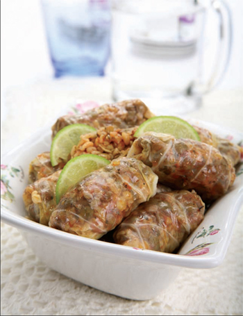 Lahanaları hazırladığınız iç harcı ile sarın.Sardığınız lahanaları tencereye sıkıca dizin. Üstüne zeytinyağını, şekerini, tuzunu ve suyunu ilave edip pişirin.
