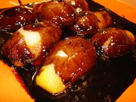 Haşladığımız armutları servis tabağına alalım üzerine çikolatalı sosu dökelim servise sunalım. Afiyet olsun.