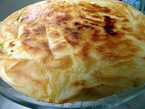 Geniş bir tavaya bir tane yufkayı açın arasına süt, yumurta ve yağ Bayanşımı sürün. Diğer yufkayıda içine parçalayın tekrar aynı işlemi yapın ve orta kata kaşar rendesi koyun. En son katta sarkan yufkaları içeri doğru katlayın. En üstüne sıvı yağ sürün çok hafif. Kızarana kadar tavada döndürüp pişirin.